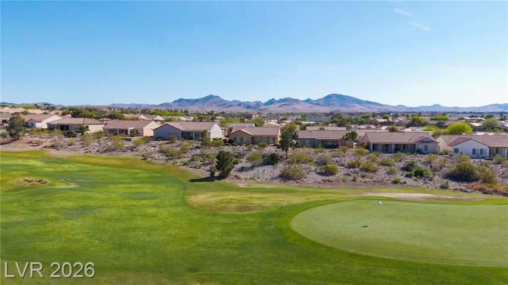 Rare opportunity to enjoy the 55+ lifestyle in this Lincoln model home in Sun City Anthem. Located on desirable golf course frontage, this well-maintained single-story home offers 2,096 sq ft with 2 bedrooms, 2 baths, and a versatile den. Perfectly positioned on the 14th hole of the Concord Course at Revere Golf Club, with golf course and mountain views from the shaded north-facing covered patio, allowing comfortable outdoor living. Enjoy expansive fairway views with no rear neighbors directly behind the property. The open floor plan includes bright living and dining areas and an eat-in kitchen with ample cabinetry and double-door pantry. The oversized primary suite features a walk-in closet and bath with dual sinks, soaking tub, walk-in shower, and separate toilet room. Residents enjoy Sun City Anthem amenities including clubhouses, fitness centers, pools, walking trails, and social activities, all near shopping, dining, and medical services.